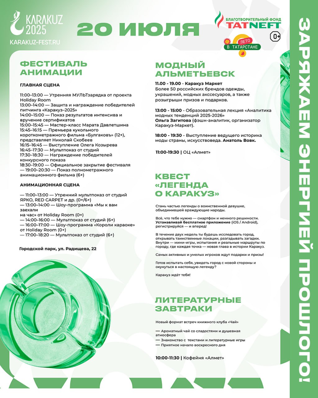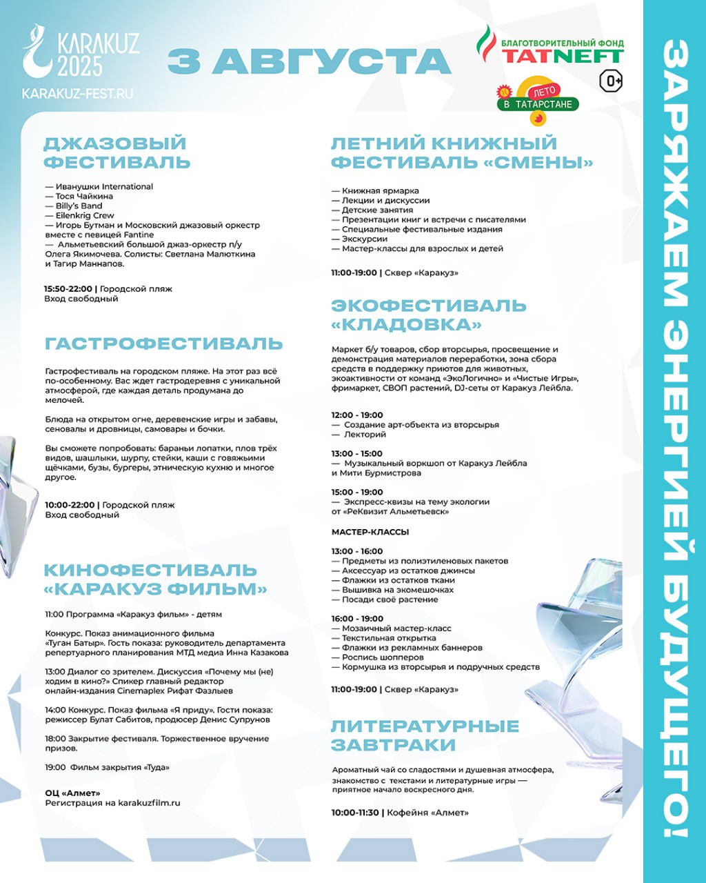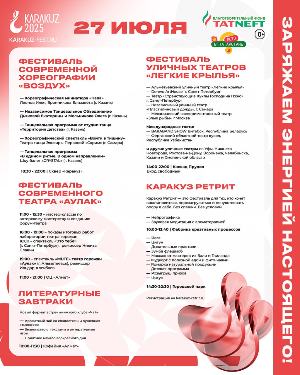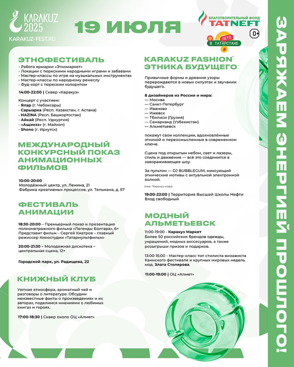 Концерт «Славься, мой Татарстан!» – это возможность окунуться в мир ярких красок, богатой истории и самобытных традиций. Вы услышите проникновенные лирические песни, зажигательные танцевальные ритмы, прославляющие красоту татарской земли и ее талантливых людей.