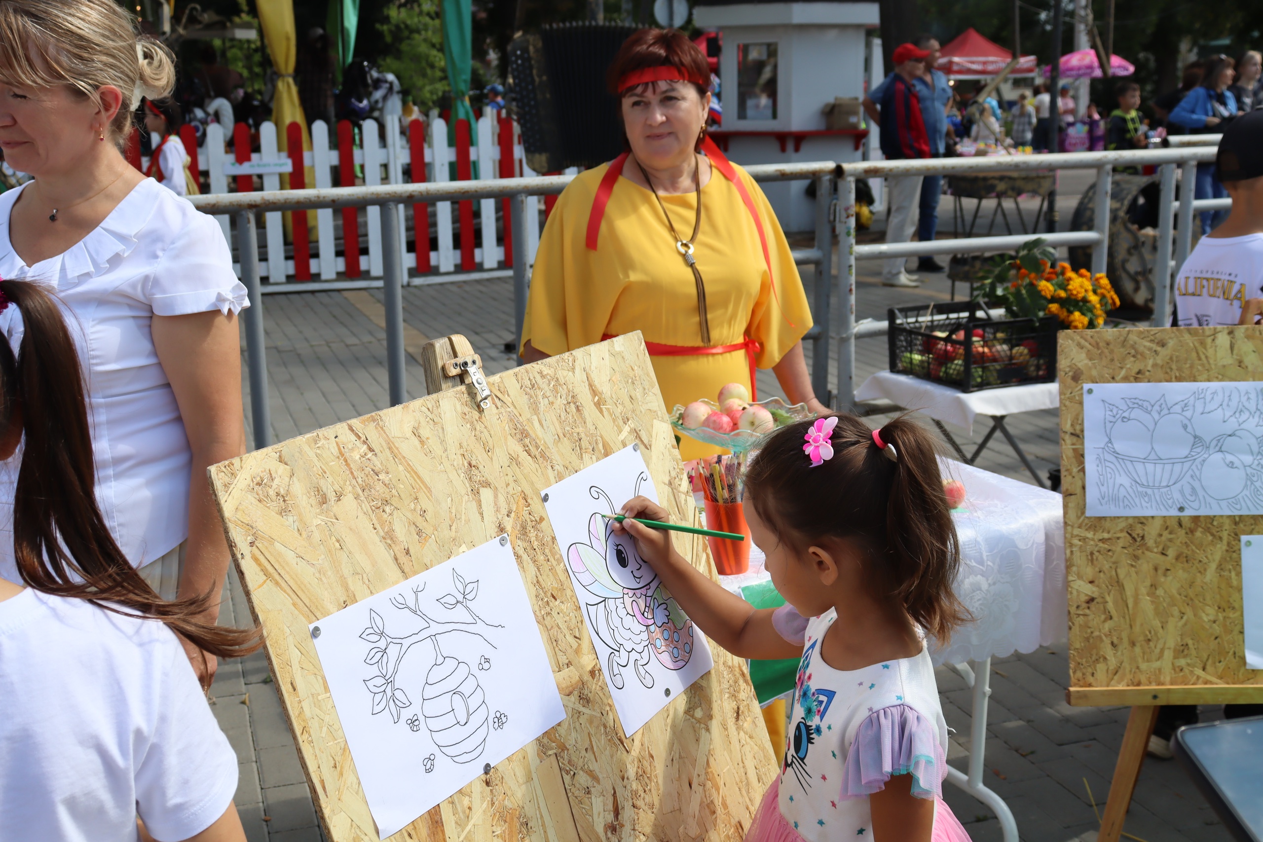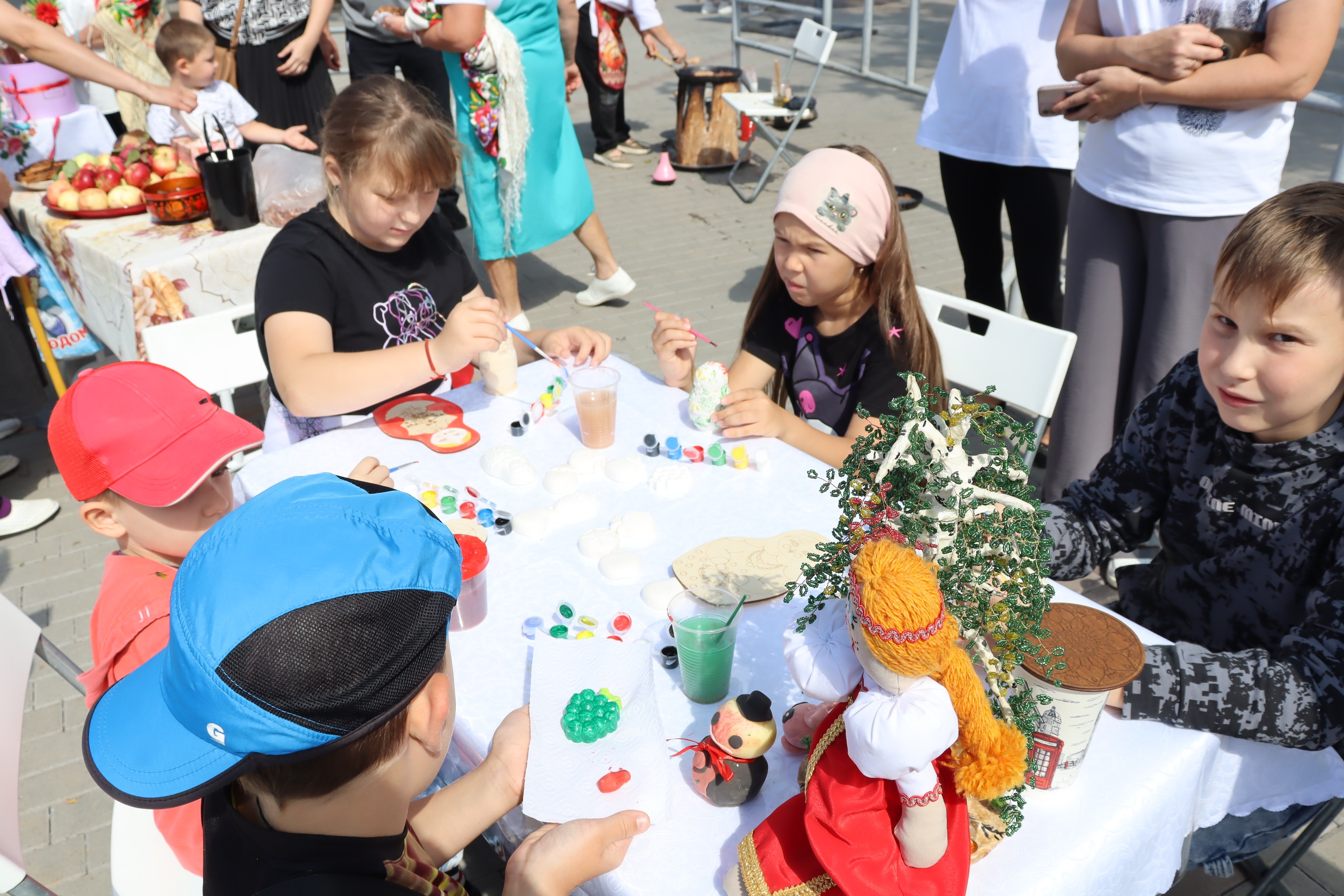 • Краски оживляют: гипсовые фигурки и деревянные матрёшки преобразятся под кистями юных художников, а для самых маленьких будут подготовлены раскраски с яблочной тематикой.