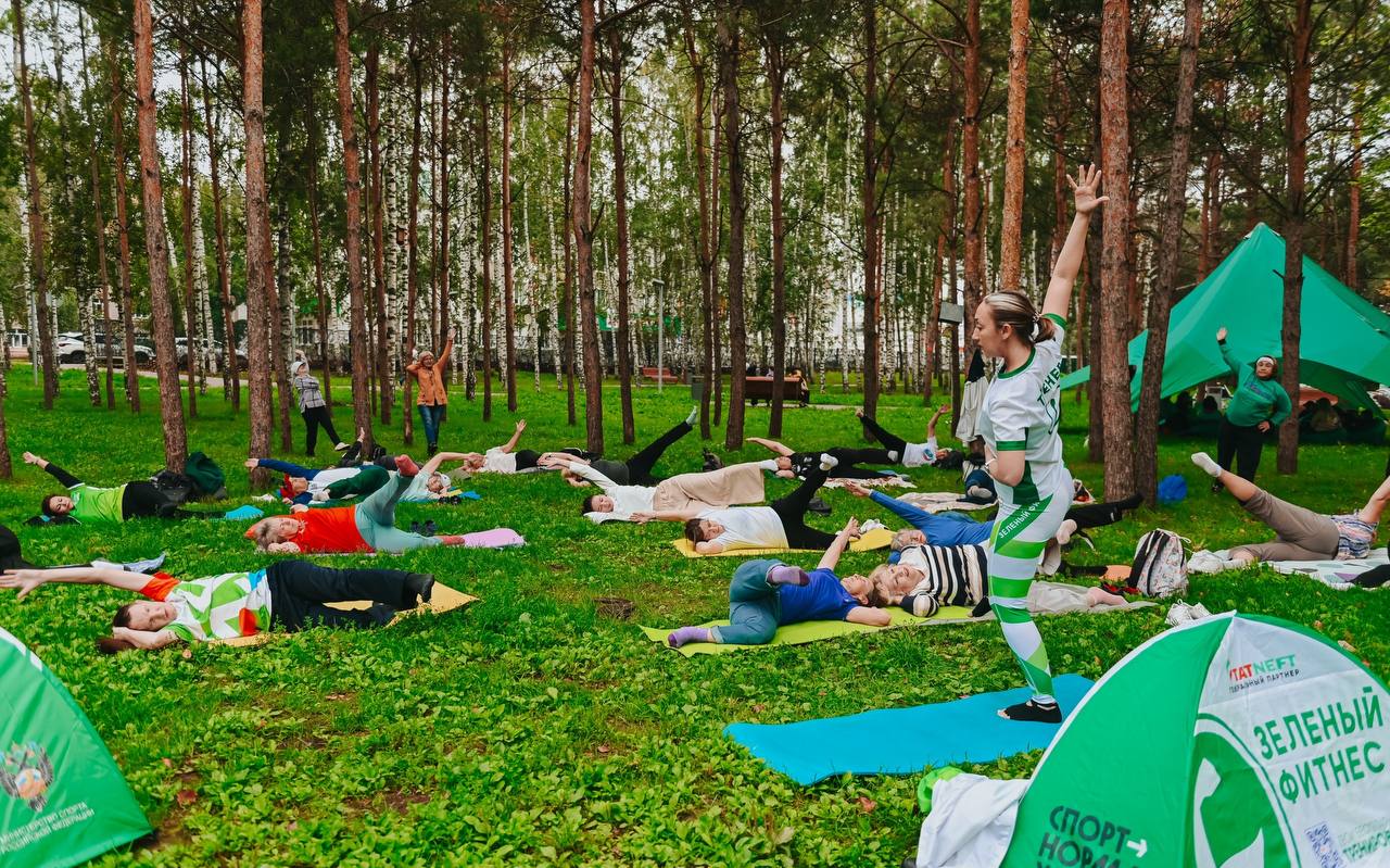 Открытая тренировка по стретчингу в городском парке в рамках проекта Зеленый фитнес!